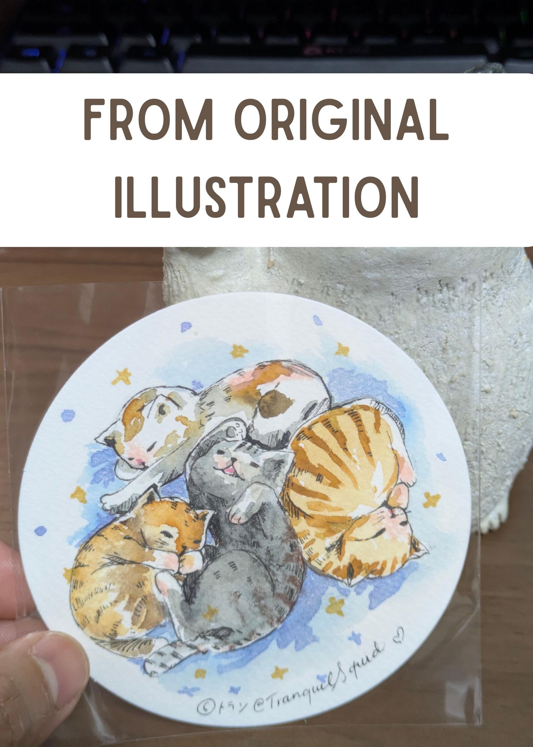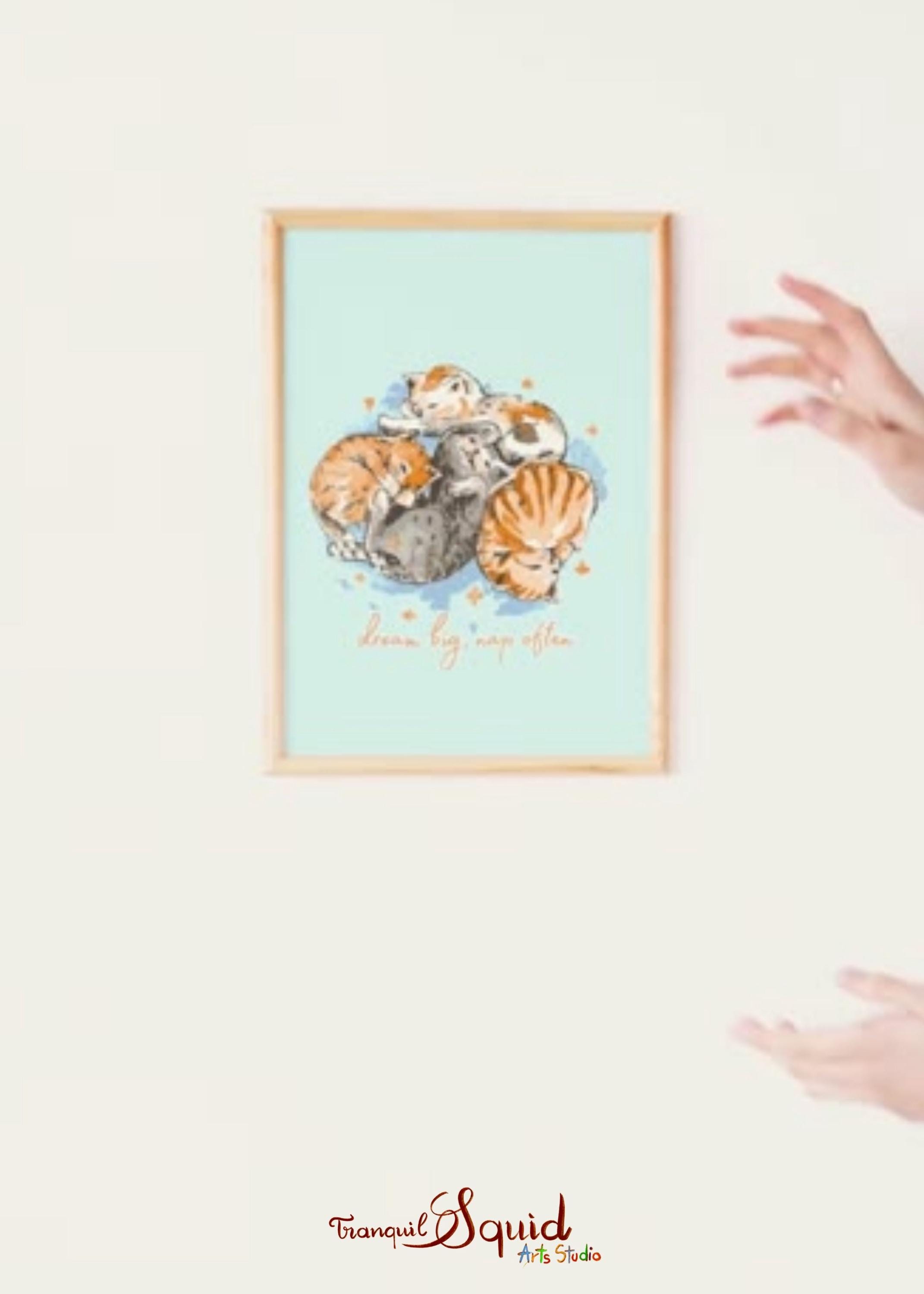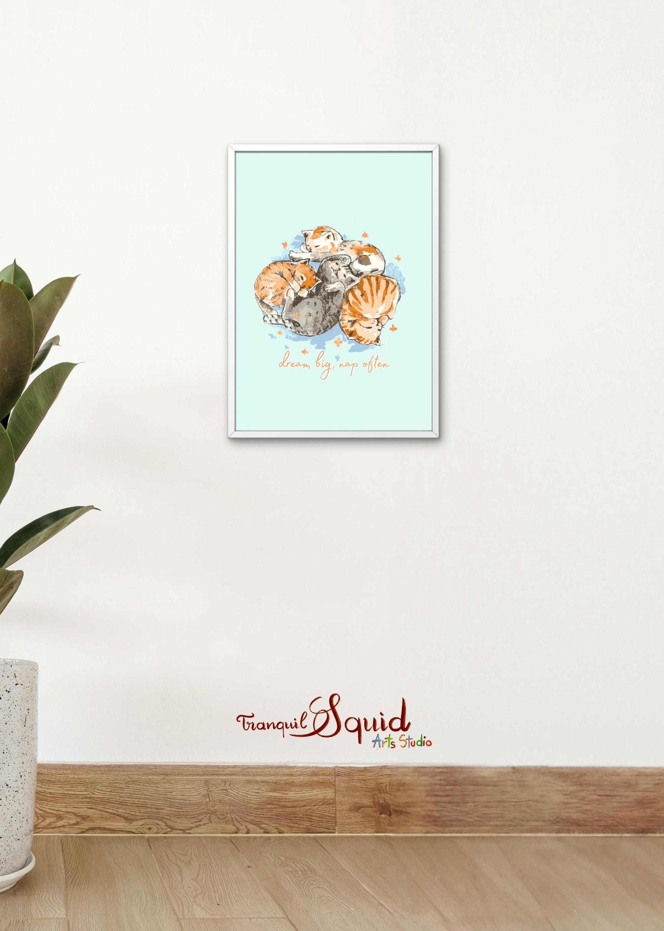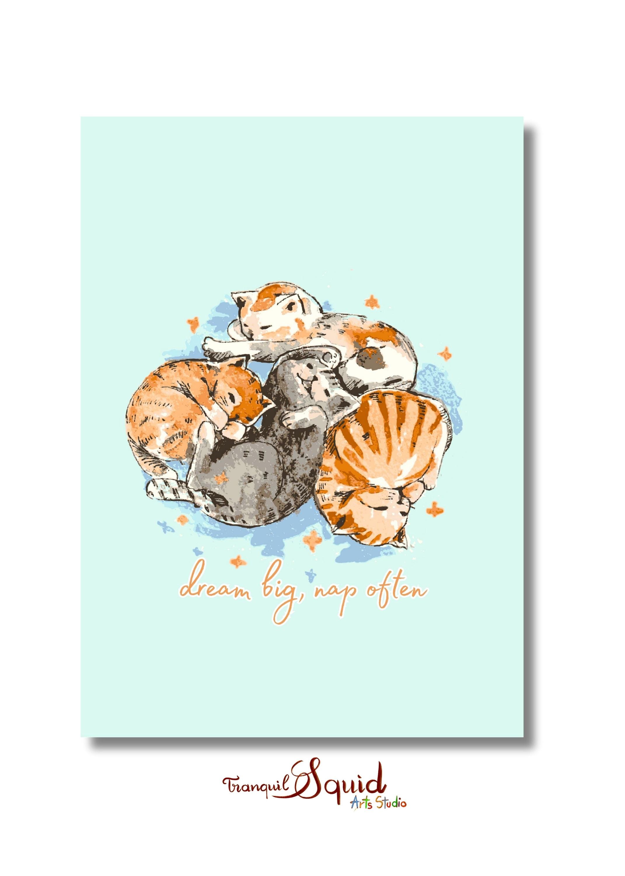 "Dream Big, Nap Often" Cute Kitty Cats Sleeping Pile Digital Art Print